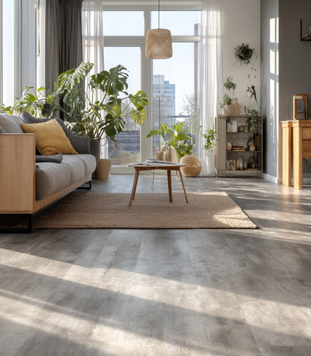 Een grijze vloer kun je in principe met veel kleuren combineren. Maar om te voorkomen dat jouw woonruimte té stoer, kil en afstandelijk wordt, raden onze interieurstylisten aan de rest van je inrichting wat ‘zachter’ te houden. Kies bijvoorbeeld voor meubels en accessoires van zachte stoffen en/of geef jouw muren een warm kleurtje.