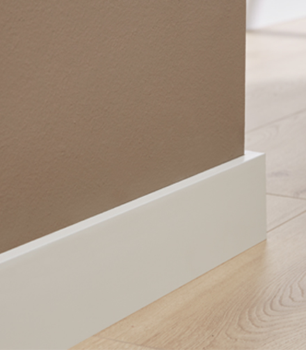 Een vloer met plinten blijft nog altijd razend populair. Het geeft niet alleen een klassieke uitstraling, maar het benadrukt ook beter het patroon, geeft een mooi contrast tussen de vloer en de wand en het kan simpelweg bij veel vloeren niet anders. Zo vullen plinten de ruimte tussen de vloer en de muur op een strakke manier op en zorgen ze voor een mooie afwerking van de vloer. Alle vloeren uit de Floorlife vloeren collectie zijn verkrijgbaar met passende plakplinten en/of hoge plinten. Wist je dat onze hoge plinten verkrijgbaar zijn in verschillende kleuren, uitvoeringen, stijlen en hoogtes? Zo kun je kiezen voor een witte, zwarte of overschilderbare plinten, een strakke, bolle of hoekafwerking en een hoogte van 9, 12 en 15 centimeter. Zo kies je altijd een plint die jouw interieurstijl past.