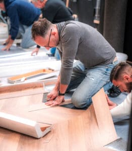 Precisie begint bij een goede werkhouding. Zorg voor voldoende licht op je werkplek en werk op een comfortabele hoogte. Meet altijd twee keer voordat je snijdt; deze oude timmermanswijsheid geldt zeker voor pvc vloeren. Het karakter van het materiaal, de natuurlijke uitstraling van de decors, alles vraagt om een respectvolle behandeling. Neem de tijd voor elke snede en laat je niet opjagen. Kwaliteit ontstaat door geduld en aandacht voor detail.