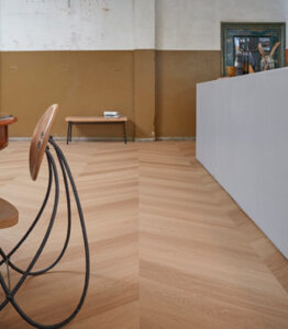 Een visgraat vloer bestaat uit korte planken die in een doorlopende hoek van 90 graden worden gelegd. Op deze manier ontstaat er een prachtig patroon die lijkt op de graat van een vis. We hoeven je dus niet uit te leggen hoe deze vloer aan zijn naam is gekomen. Dankzij de rijke historie van de visgraat vloer voeg je binnen een handomdraai een ongeëvenaarde sfeer en klasse toe aan jouw interieur. Wil je dit patroon nog extra benadrukken? Kies dan voor een band en een bies rondom jouw visgraat vloer. Een band is een extra strook in de lengte van de muur en kleur van jouw visgraat vloer die tussen de muur en het patroon geplaatst wordt. De bies is een dunne zwarte lijn die je tussen de visgraat vloer en de band plaatst. Bij Floorlife hebben we karakteristieke visgraat vloeren in al onze collecties. Zo vind jij gegarandeerd een visgraat vloer die bij jouw woonsituatie past.