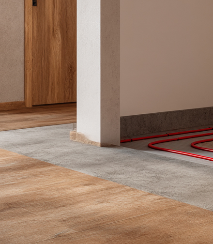 Ook laminaat is te combineren met vloerverwarming. Laminaat heeft een isolerende werking en (daar is ‘ie weer) een lage warmteweerstand. Let er bij laminaat wel op dat je bij het plaatsen een ondervloer moet gebruiken. Deze ondervloer zorgt voor een extra laag tussen de ondervloer en het laminaat. Voor een optimaal resultaat van de vloerverwarming is het belangrijk dat de warmtedoorlaatweerstand niet hoger is dan 0,15m2 K/W. Hoe bereken je deze waarde precies? Dit is een optelsom van de warmteweerstad van de ondervloer én laminaatvloer.