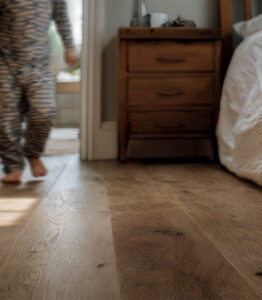 Ook voor slaapkamers zijn TÜV gecertificeerde vloeren een uitstekende keuze. Je brengt ongeveer een derde van je leven door in deze ruimte, vaak met beperkte ventilatie tijdens de nacht. Een vloer die geen schadelijke stoffen uitstoot, draagt bij aan betere nachtrust en algemeen welzijn. Het authentieke karakter van onze pvc vloeren met hun natuurlijke uitstraling creëert bovendien een rustgevende sfeer die perfect past bij een slaapkamer.